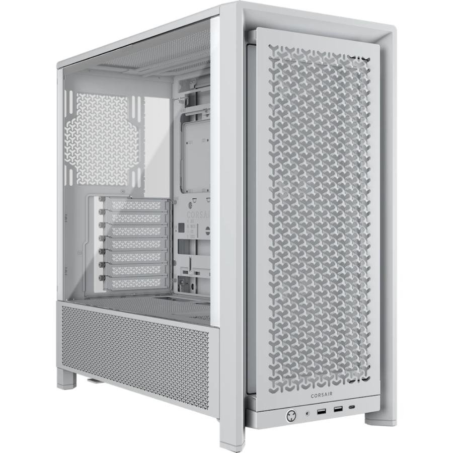 Estética Blanca Integral: Corsair utiliza un acabado blanco uniforme en los paneles, el chasis interno, los filtros de polvo y los ventiladores para una coherencia visual máxima.