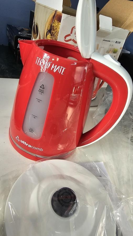 A535898 Completo con base, bolsita protectora tanto en base como en la pava electrica, tiene algunos detalles esteticos en el packaging, tiene detalles de uso en la base interna de la pava, tiene la tapa del packaging interno escrito